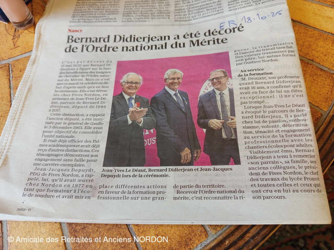 Décoration de l'insigne de l'ordre du merite pour Bernard DIDIERJEAN professeur de soudure chez Fives NORDON.
